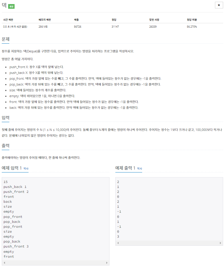// back: 덱의 가장 뒤에 있는 정수를 출력한다. 만약 덱에 들어있는 정수가 없는 경우에는 -1을 출력한다.