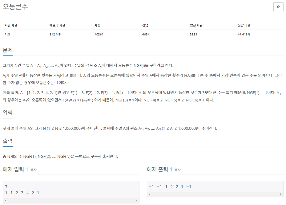 [백준] 201 - 자료구조 1 (연습) : 오등큰수 (17299번 JAVA)