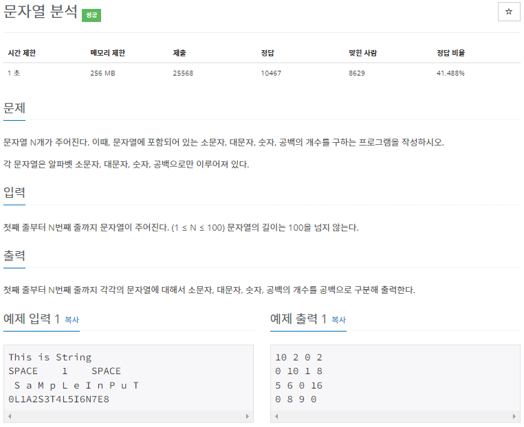 [백준] 203 - 자료구조 1 (참고) : 문자열 분석 (10820번 JAVA)