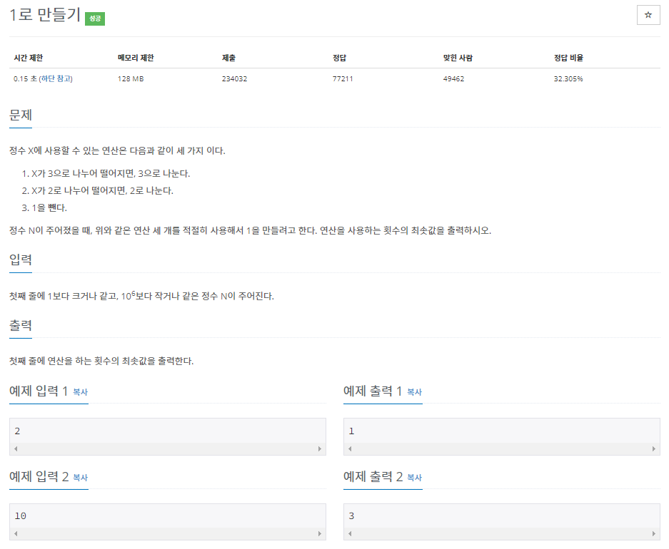 [백준] 1로 만들기 (!) (1463번 JAVA) / 400 - 다이나믹 프로그래밍 1