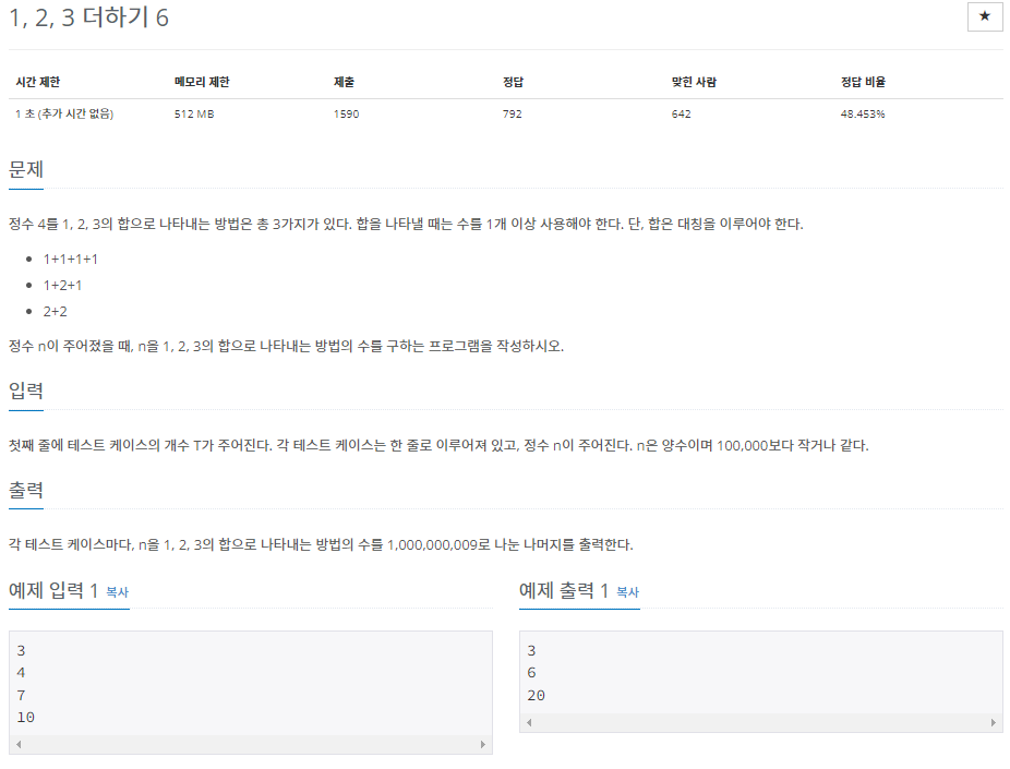 | [백준] 1, 2, 3 더하기 2 (!) (12101번 JAVA) (0) | 2023.01.14 |