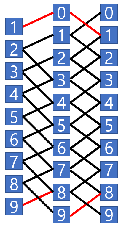 dp[N][9] = dp[N-1][8] // 이전 자리 수가 8인 경우