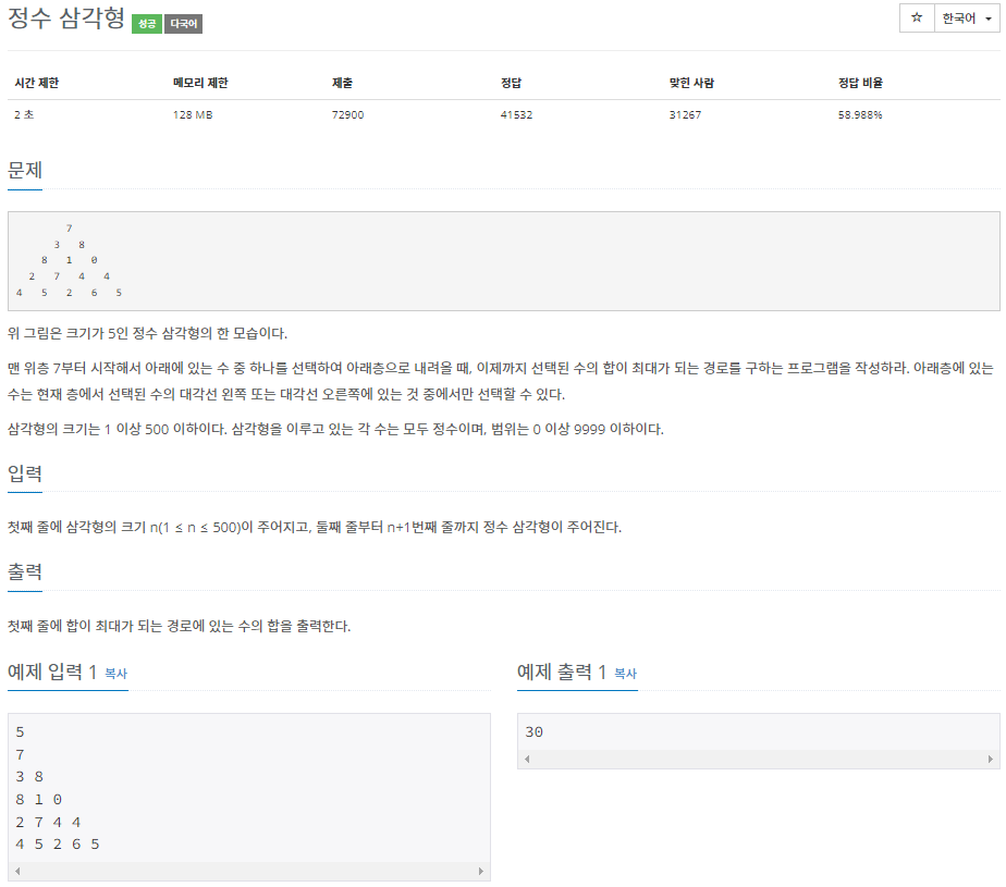 // 삼각형의 크기 n (1 ≤ n ≤ 500)