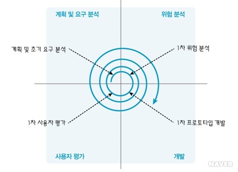 [계획(수립) - (위험)분석 - 개발(및 검증) - (고객)평가] 순으로 반복