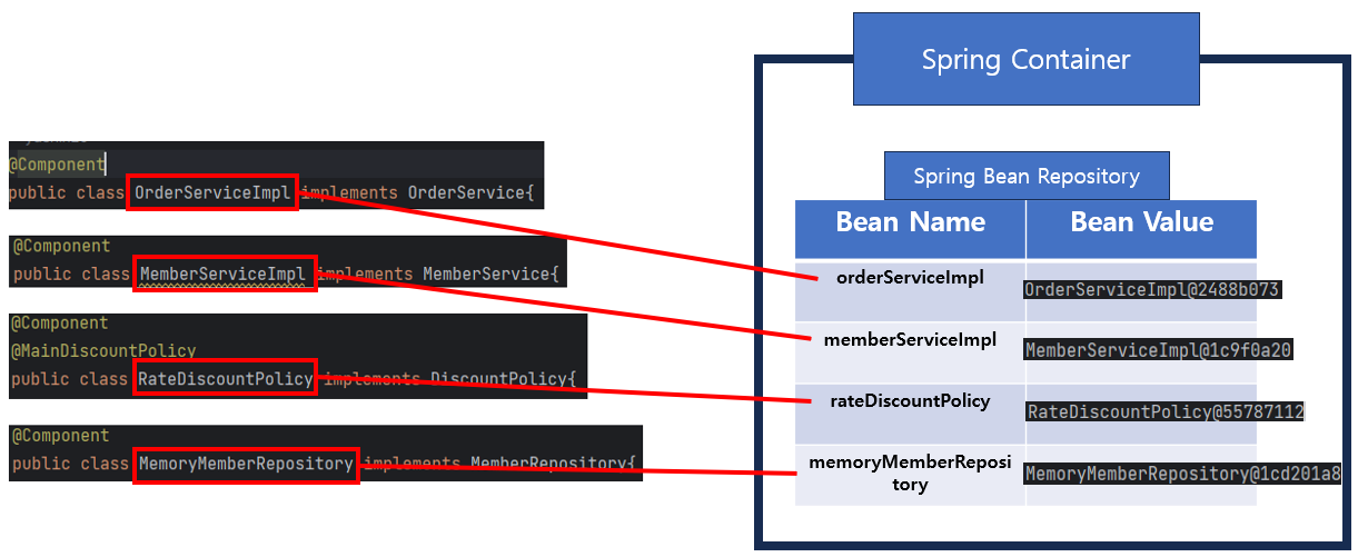 <스프링 컨테이너에 등록된 스프링 빈>