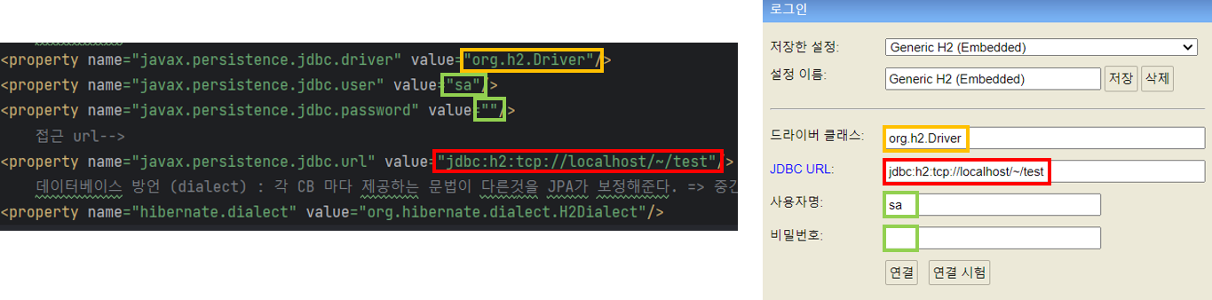 persistence.xml 에서 설정한 내용과 동일하게 이루어져야한다.
