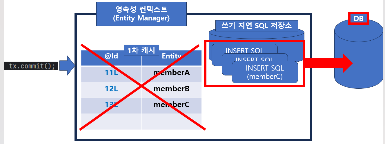 쓰기 지연 SQL 저장소를 가짐으로서의 특징 : 1. 트랜잭션을 지원하는 쓰기 지연 (transactional write-behind)