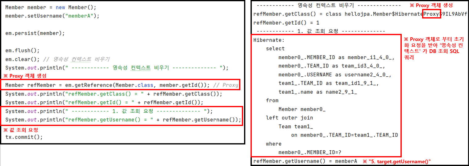 ※ 전제 : 현재 영속성 컨텍스트에는 "Member Proxy" 프록시 객체 하나만 올려져있다.