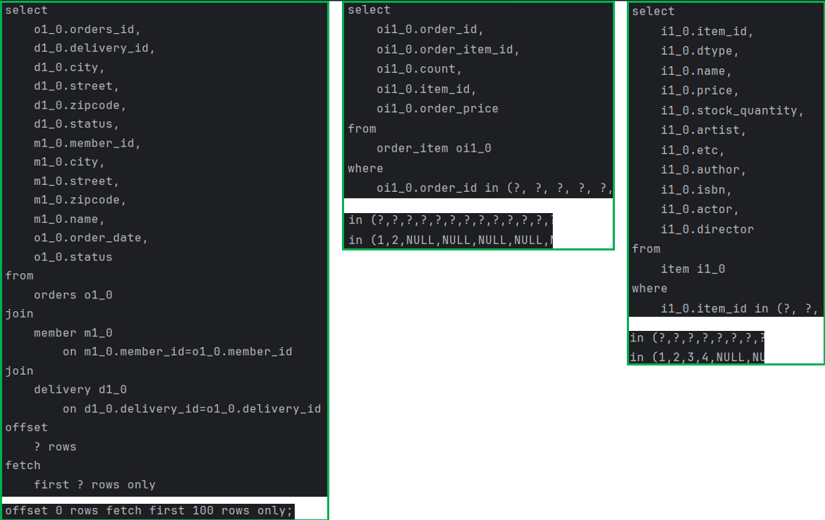 Order 테이블의 2개의 데이터가 조회되고, -> Order 테이블 조회 쿼리 -> 1개
