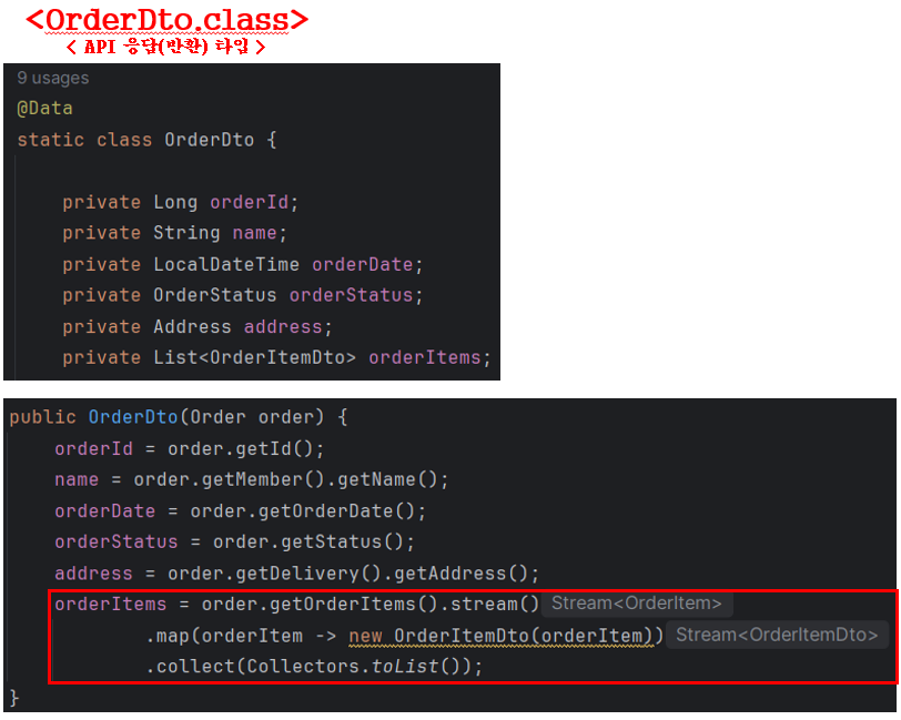 그 2개의 데이터를 각각 OrderItem이 지연 로딩 -> 데이터 2개에 대한 Order_Item 조회 쿼리 -> 2개