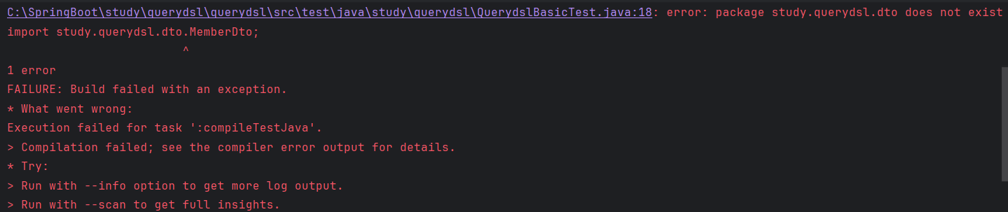 에러 내용은 "dto" 패키지를 찾지 못하는 상황이다.
