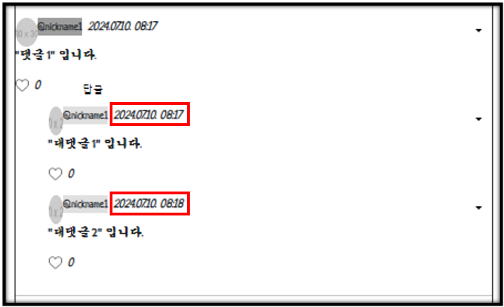대댓글이 생성일자의 오름차순으로 정렬된 것을 확인 할 수 있다.
