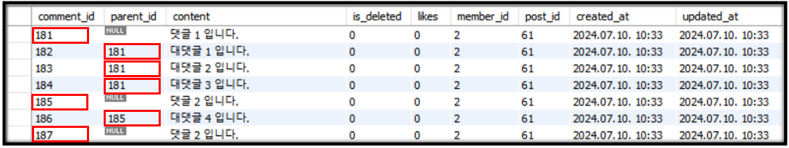 4. 자식 댓글은 자식 댓글을 가질 수 없다.