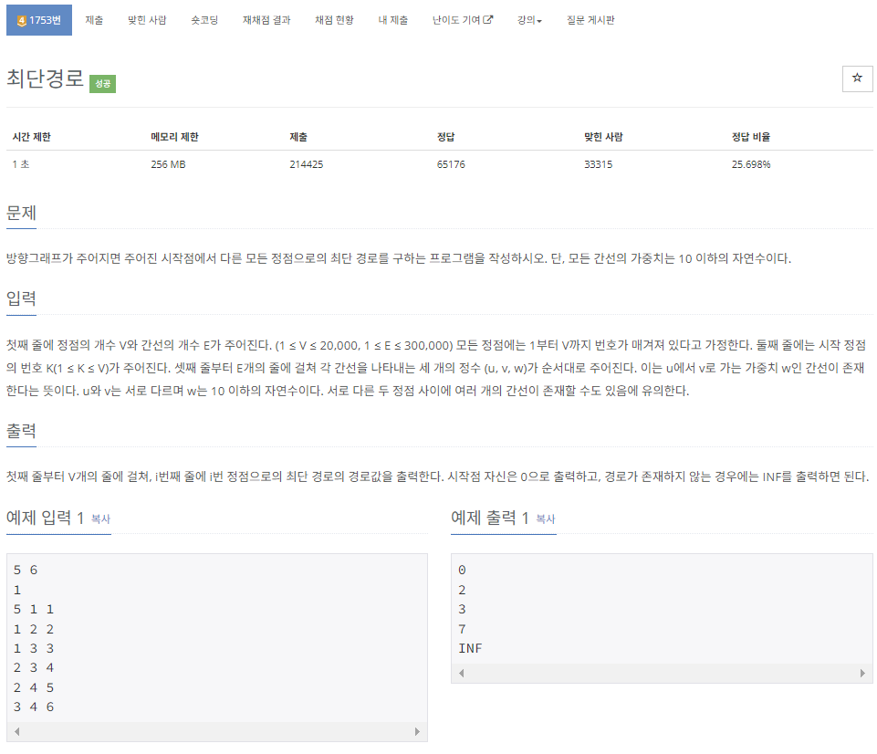 다익스트라 알고리즘 반복 학습을 위해 이 문제를 선택하였다.