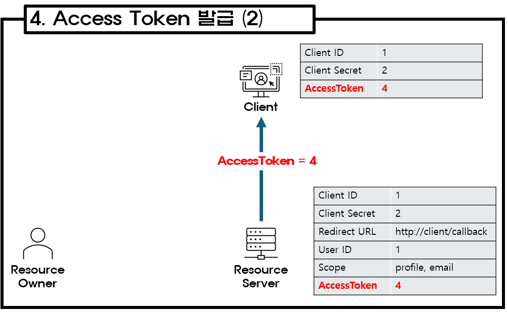4-2) R.S 는 Client 에게 Access Token을 발급한다.