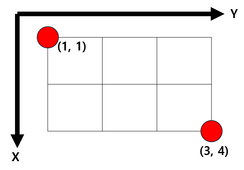 ※ 기존의 2차원 평면 좌표와 조금 다르다!
