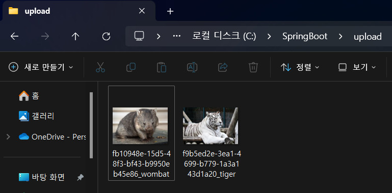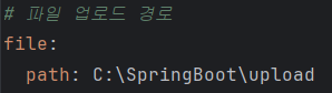 즉, 위 코드는 HTTP 요청 경로 " /upload/** " 와 로컬 디렉토리 "C:/SpringBoot/upload"를 매핑해주는 역할을 수행한다.