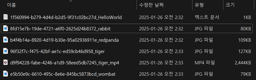 업로드된 파일이 저장된 것을 확인할 수 있다.