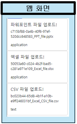위 3가지 파일을 웹 서비스의 '파일 업로드' 기능을 통해 파일 업로드를 진행할것이다.