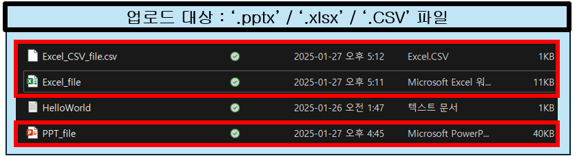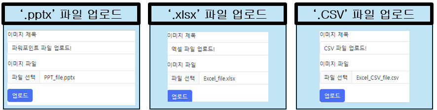 +) '.pptx' , '.xlsx' , 'CSV' 파일 업로드