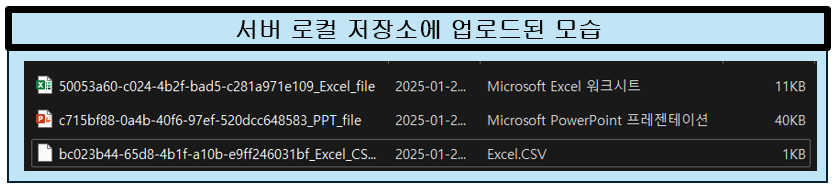 서버 로컬 저장소에 정상적으로 업로드 된 것을 확인할 수 있다.