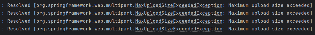- 설정된 크기를 초과하는 파일 업로드시 예외가 발생하며 요청은 처리되지 않는다.